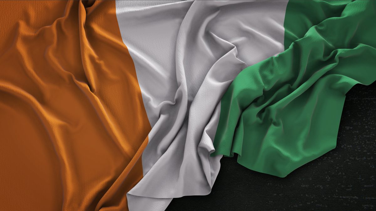 Ivory Coast Flag Wrinkled On Dark Background 3D Render