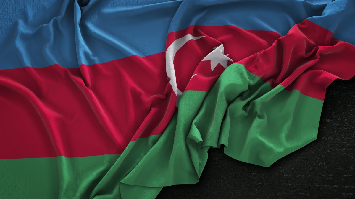 Azerbaijan Flag Wrinkled On Dark Background 3D Render